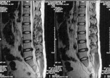 吳先生因工作經常搬運重物, 有腰部及大腿附近痠痛,先接受貼布、推拿等傳統治療,然症狀不但未見改善反而逐漸加劇,導致右下肢痠麻、疼痛,經到醫院診治疑有腰椎間盤突出症, 醫師建議先藥物及復建治療。 經積極的藥物及復健治療後 情況仍舊沒有改善,一個月來反而更加嚴重,症狀變成無法久站,也無法久坐,更無法工作,晚上疼痛到無法入睡,成為醫院急診室打止痛針的常客。經醫院安排 腰椎磁振造影檢查(MRI),發現有嚴重的腰椎間盤突出症,並建議手術治療。