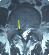 吳先生的MRI顯示嚴重的椎間盤突出及神經根壓迫